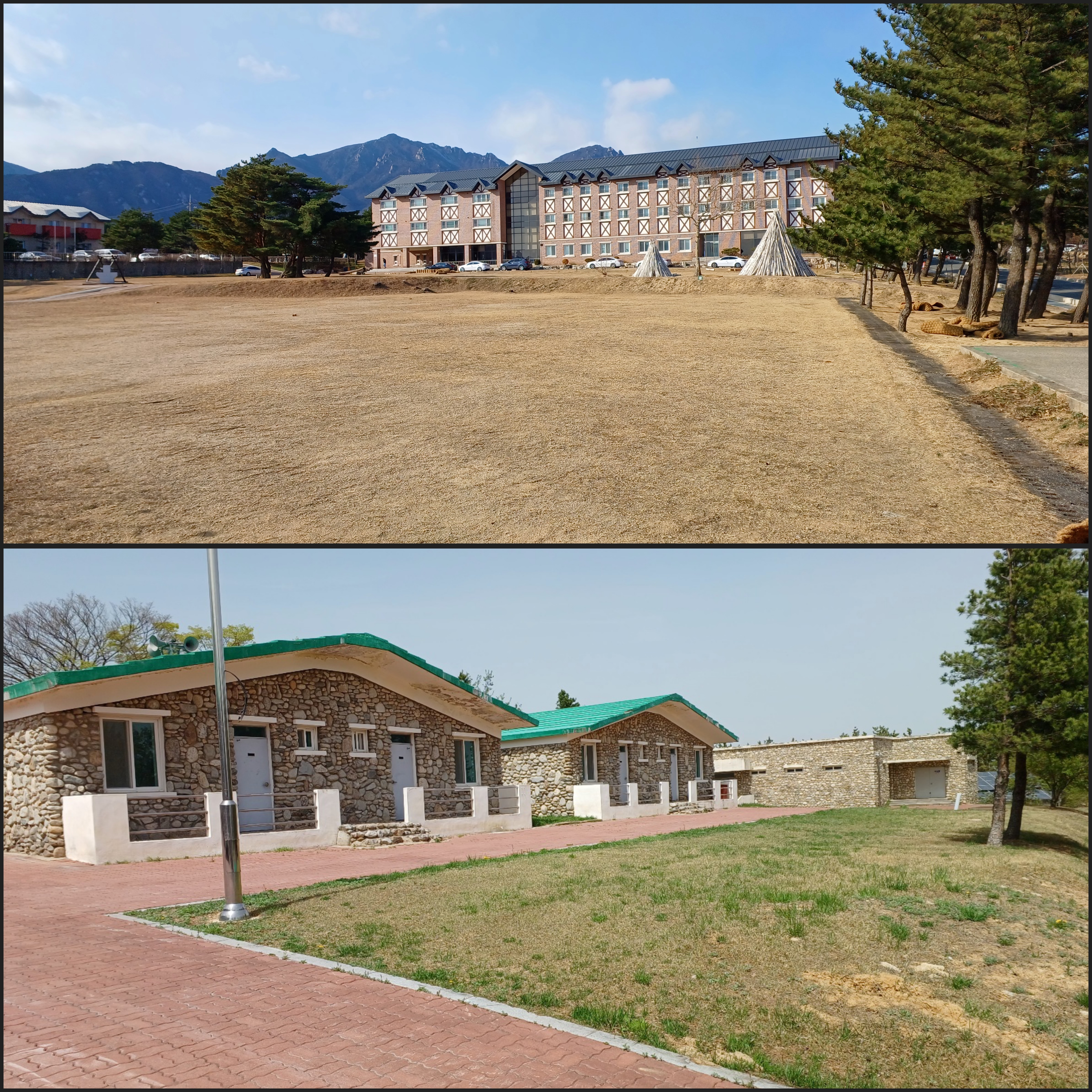공연장의 상단에서 왼쪽을 보시면 고성의 바다가 보이고, 왼쪽을 보시면 설악산 울산바위가 보입니다.
